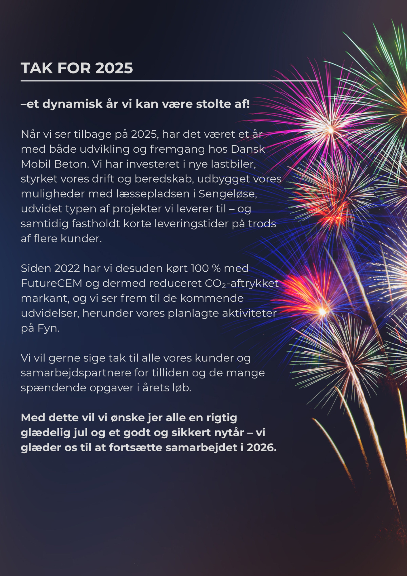 Desuden er produktionsmåden meget mindre ressourcekrævende end traditionel betonproduktion, fordi Dansk Mobil Beton ikke skal drive en traditionel fabrik. Og sidst – men ikke mindst – betyder produktionsmåden meget mindre tomkørsel og dermed mindre udledning af CO2.