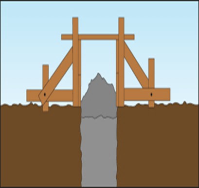 Galgerne, der består af 3 stk. tømmer for eksempel (5x10x100 cm), indrammer hjørnerne og skal placeres således, at de ikke rives omkuld under arbejdet.